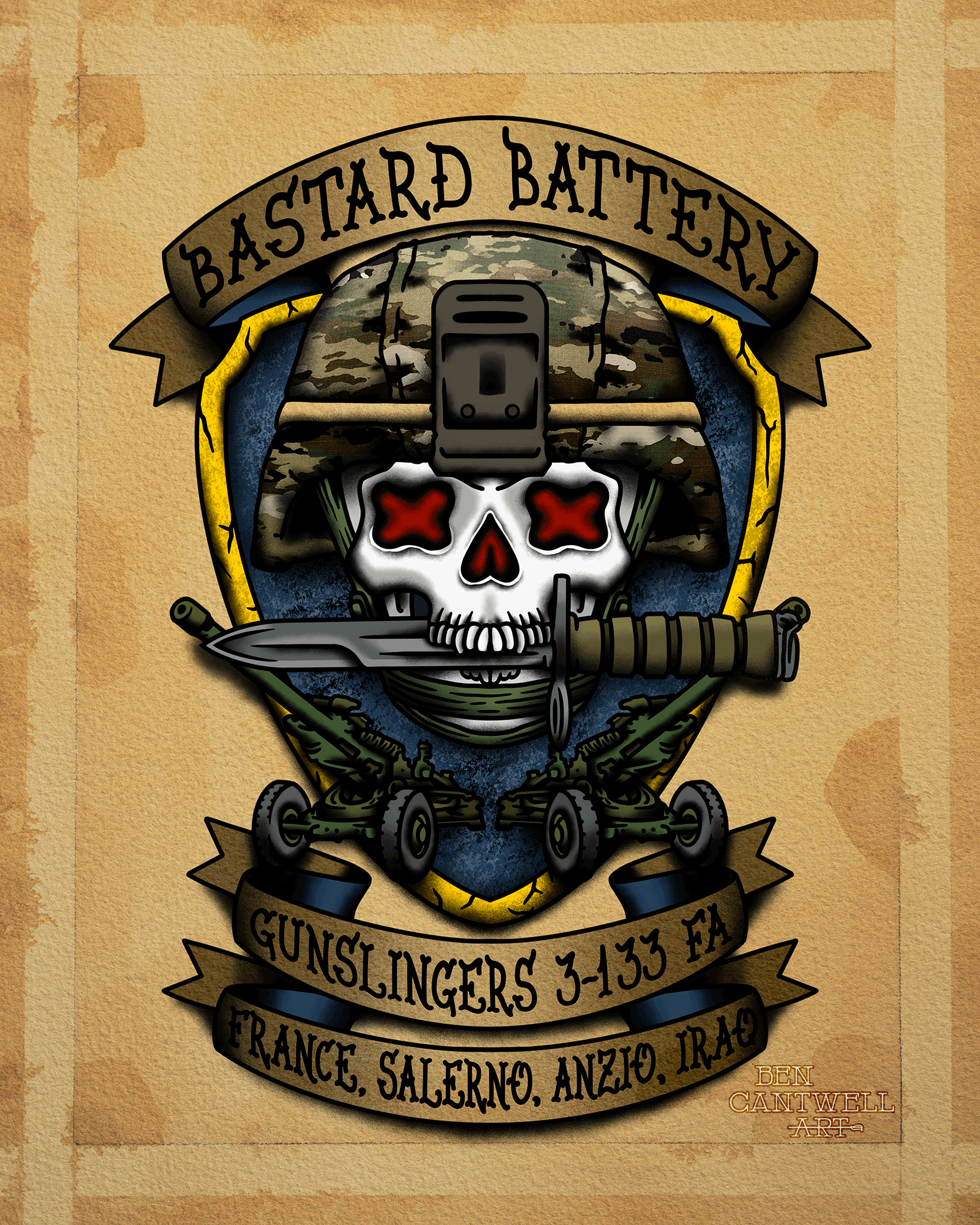 Born in the blast zone, raised on recoil. This one's for the loud-mouthed, sleep-deprived, red-legged bastards of 3-133 FA. Helmeted skull front and center, flanked by howitzers and bad intentions-these are the gunslingers who bring thunder and leave nothing but ringing ears and spent brass.