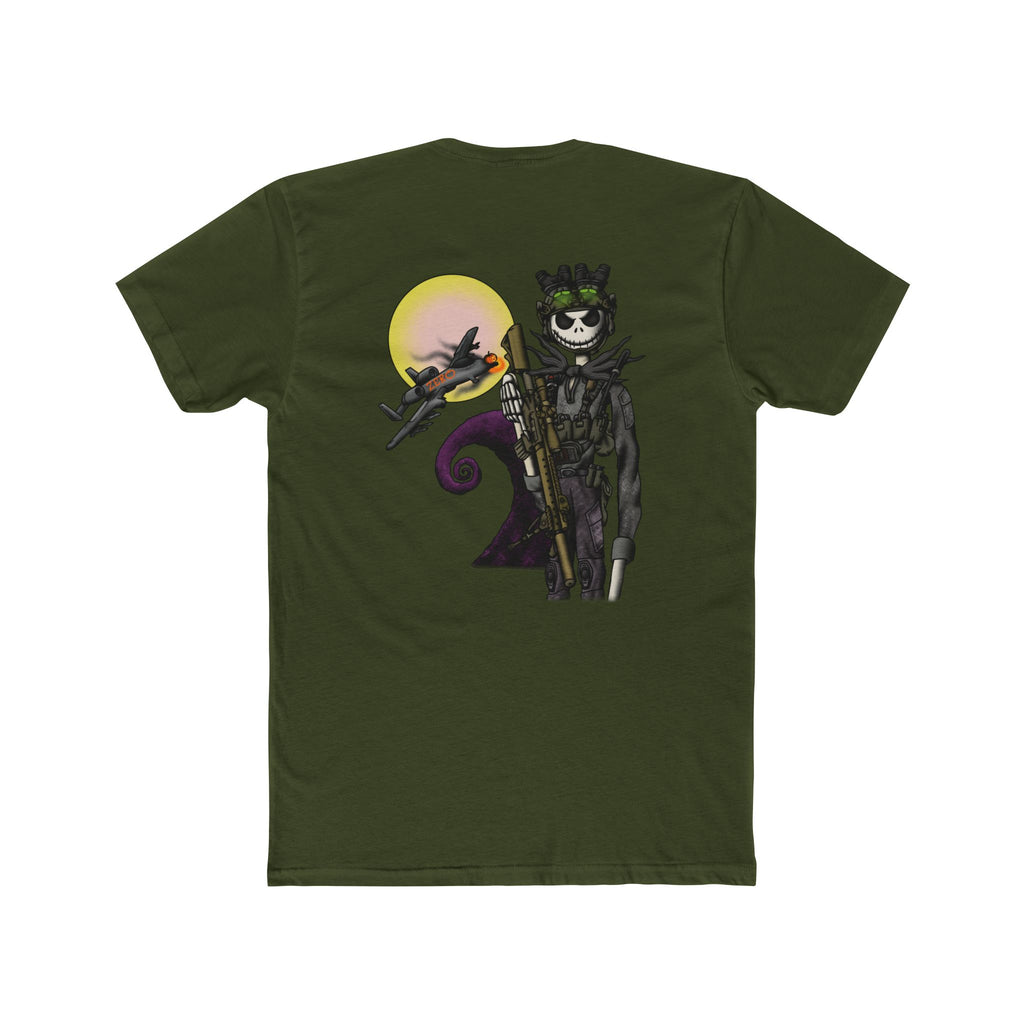 Jack Skellington takes aim with a Mk-12 while an A-10 Warthog screams overhead — spooky meets tactical in true Burton-meets-barracks fashion. Dark, funny, and full of attitude. Designed by a veteran, printed by veterans, made in the USA.